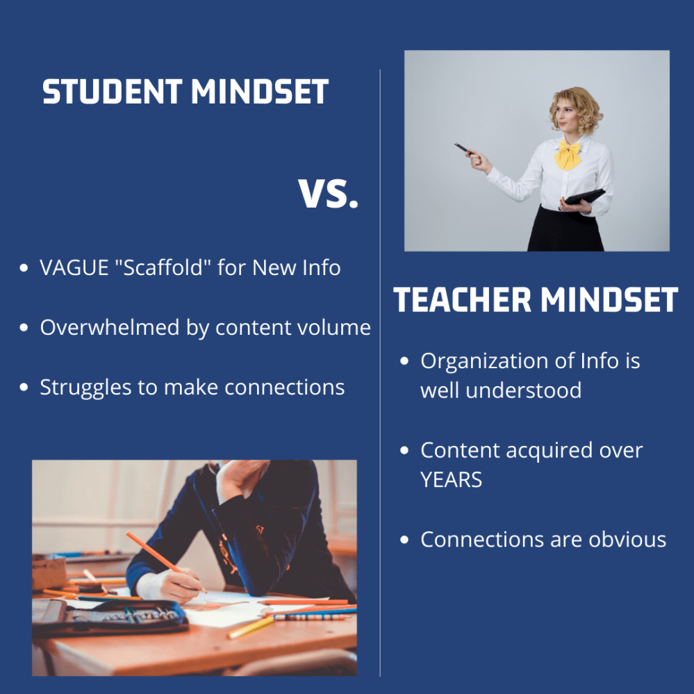 The importance of “generating connections” or “generating understanding” as you learn novel information cannot be overstated. Another research supported method for deepening understanding and improving retention is to try to explain the rationale behind methods of problems solving or why certain ideas are related (i.e., EXPLAIN “WHY”) (de bruin, 2007). As a teacher, or someone with more experience or knowledge, these connections may seem obvious. However, as a student, these connections or the “structure/scaffold” that information fits within can often be elusive or poorly understood (See Figure Below):