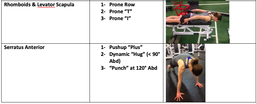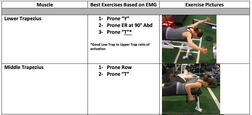 I have created a quick table below that distills the exercise that I feel are the best representation of this data and those that I tend to select due to their utility in strengthening rotator cuff and scapulothoracic musculature (Click HERE for PDF DOWNLOAD of the table below):