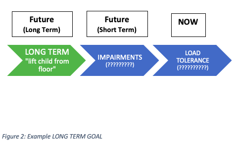 The next step in the process is to identify the specifics that are standing in your patient’s way from attaining their long-term goal. I like to think about these things as the “low hanging fruit” that show up in your clinical examination with the patient. We commonly refer to these as “impairments” such as: Weakness, reduced range of motion, inflexibility, poor motor control, pain, reduced balance or proprioception, sensory deficits…