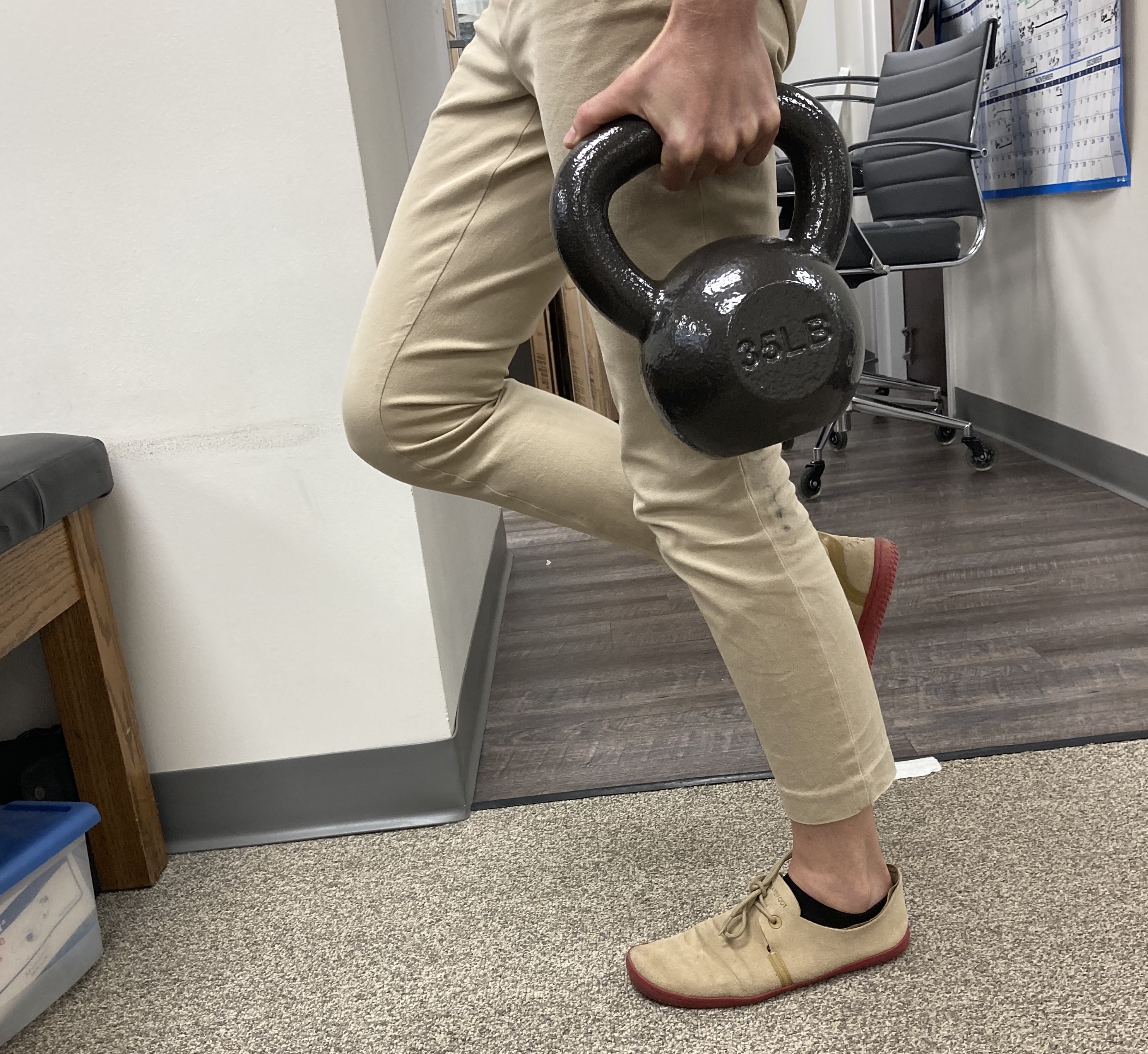 Progression of load is important and often my goal for individuals is to build up to 2-3 days per week of 3-5 sets of heavy single leg calf raises performing 8-12 repetitions in each set. One way to adapt this exercise for those with foot or ankle injuries may be to utilize a “stiff” soled shoe or rigid plate in order to limit toe or foot bending (flexion) but still reap the benefits of the calf strengthening that this exercise can provide. See video below for discussion of this concept: