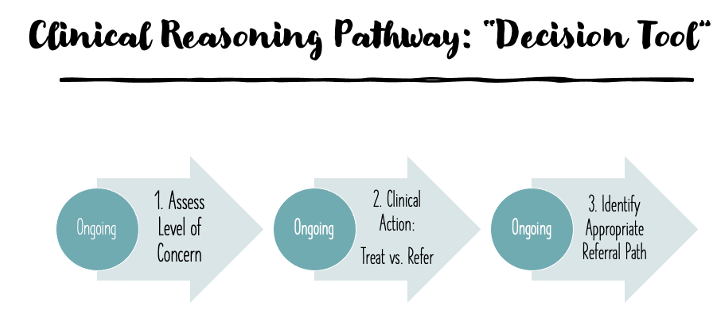 An updated framework for screening decisions was developed by The International Federation of Orthopaedic Manipulative Physical Therapists (IFOMPT) and described in a recent 2020 article (Finucane, 2020). This framework recommends a three-step process that I have depicted below that seeks to provide practical steps to guide clinical decision making in physical therapy practice.