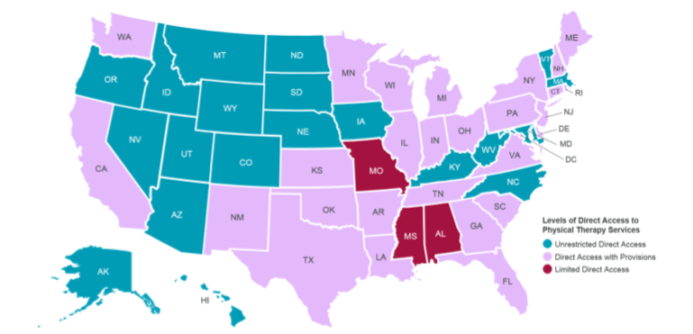 Image above from APTA.org Direct Access By State (Current as of Feb 2021; Accessed January 15th, 2022))