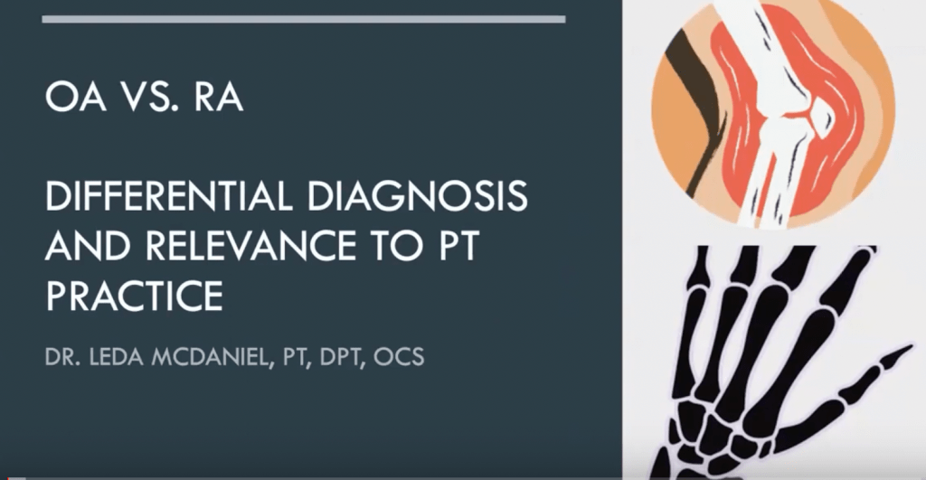 Check out this short video that I made recently for a class for physical therapy students explaining some of the differences between osteoarthritis and rheumatoid arthritis and some of the evidence supported treatments for each.